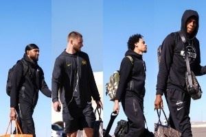 掘金登机飞往旧金山 清一色黑色运动装主打一个免费
