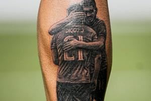 😔缅怀国家队队友!鲁本-内维斯将拥抱若塔画面纹在小腿